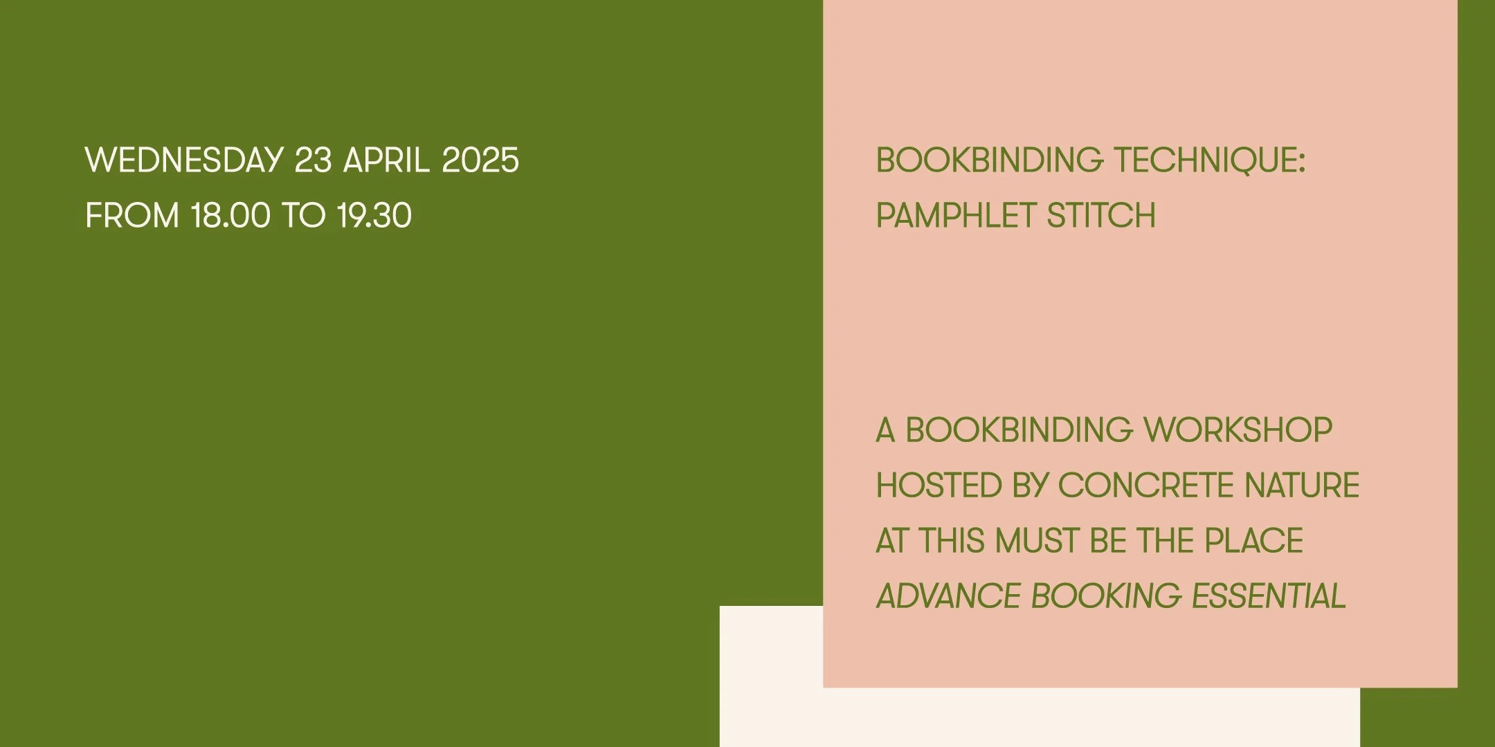 During this 90-minutes workshop you will learn how to create two softcover notebooks using the 3-holes pamphlet stitch to assemble coloured paper, risograph printed lined paper and hand-painted paper covers produce by Concrete Nature inspired by This Must Be The Place's beautiful colour palette. All materials and tools will be provided, alongside with a useful instruction sheet with step by step instructions to help you along the way, and you will leave with your new notebooks ready to fill in!