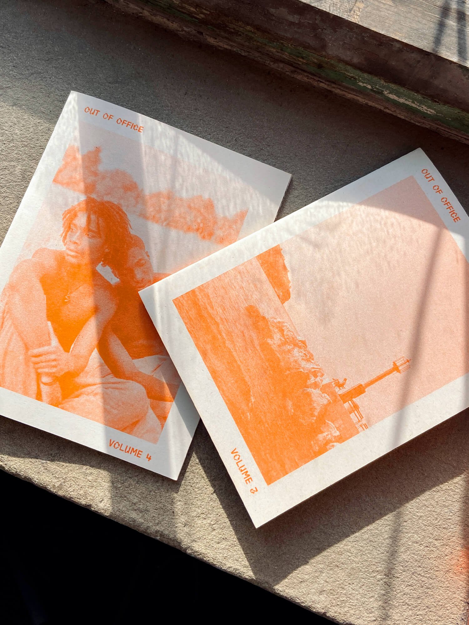 OUT OF OFFICE is a series of risograph printed publication exploring the lives of creatives outside of work across four volumes.